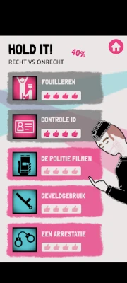 Spelers van het spel leren aan de hand van 5 situaties wat de do’s en don’ts zijn wanneer ze met de politie in contact komen. Ze dienen op het juiste moment op HOLD IT! te klikken en geven vervolgens aan wie in de fout gaat. Ze krijgen hierbij instant feedback op hun keuze. De bedoeling van het spel is dat ze de scenes herspelen tot ze voor elke scene 4 ‘duimpjes’ halen.