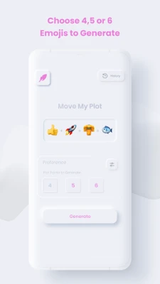 ⚡ Generate 4, 5, or 6 emojis for plot points. ✔️ Select emoji buckets you want suggestions from (more to come). 📜 Session history to review what you have generated. 🪁 No written keywords to bind you. Let your imagination fly.